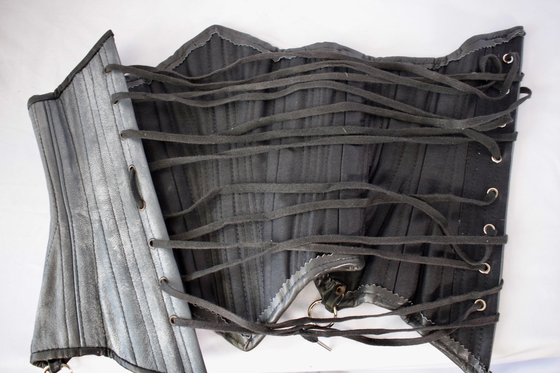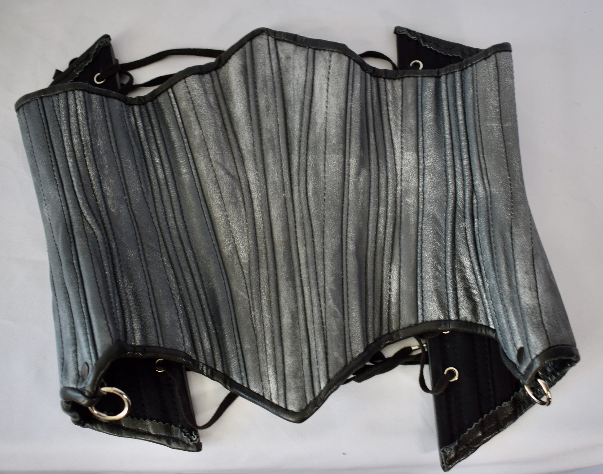 2000s Silver Leather Corset, Metamorph Quirky Couture