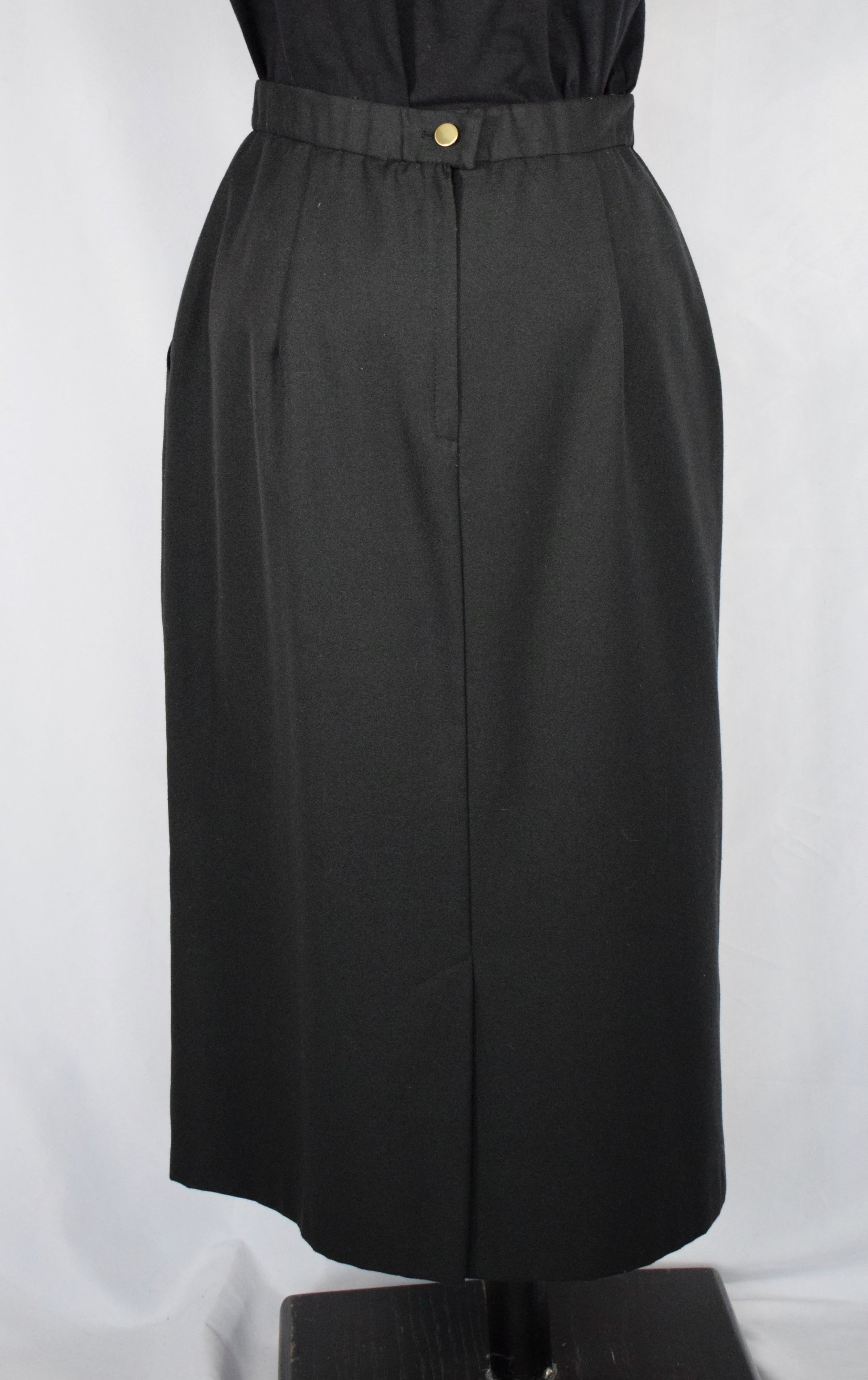 Black polyester pencil skirt, by Koret, gathered waist into waistband- It has pockets! lined